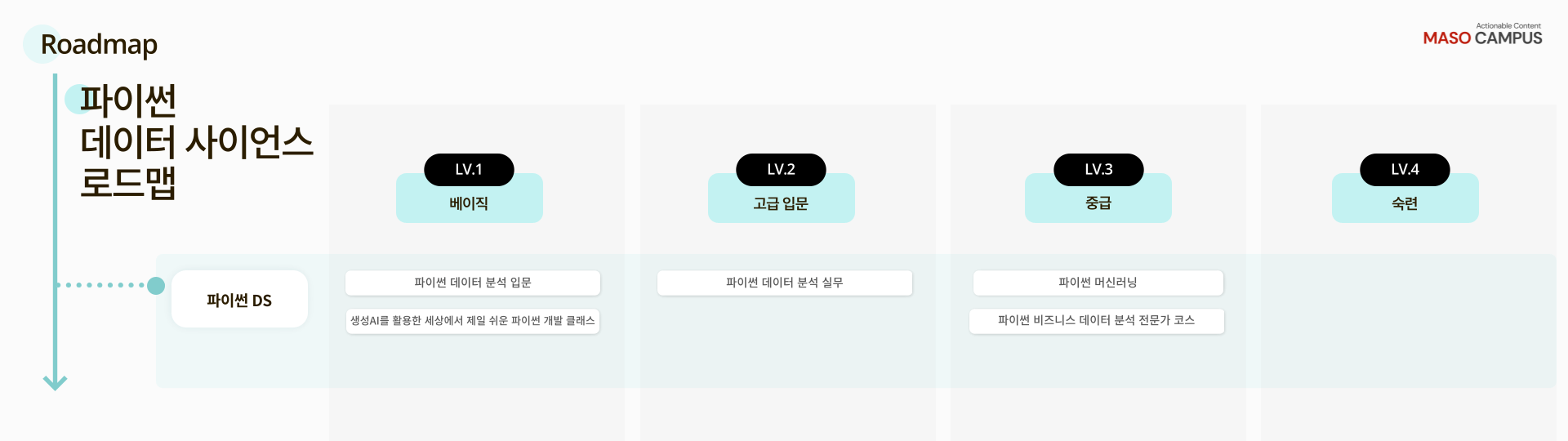 마소캠퍼스의 Actionable and Time-Saving Curriculum으로 성장의 길을 함께 걸어나가길 기원합니다.