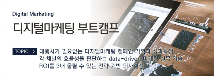 다른 수업(디지털마케팅 부트캠프)의 부분이라서 "개론"이예요. 깊지는 않지만 넓은 분야를 터치해서 디지털마케팅에 대한 전체적인 그림을 그릴 수 있게 해주는게 좋았구요, 모르고 있던 툴 들을 많이 소개해주셔서 좋았습니다. 현업에 바로 쓸 수 있는 스킬은 안 다루구요, 대학생이나 신입사원이 교양으로 듣기 좋은 수업이예요.