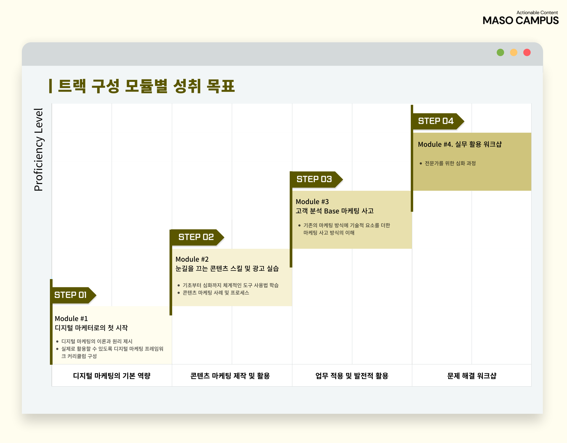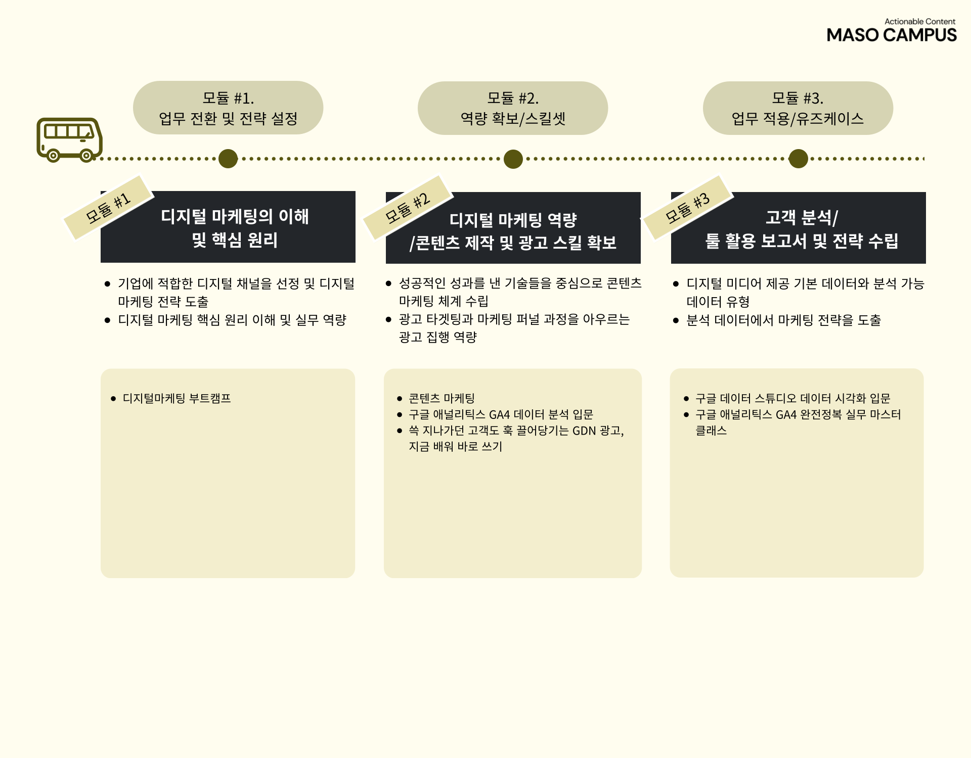 마소캠퍼스의 Actionable and Time-Saving Curriculum으로 성장의 길을 함께 걸어나가길 기원합니다.